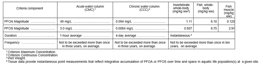TABLE 1—DRAFT RECOMMENDED FRESHWATER AQUATIC LIFE WATER QUALITY CRITERIA FOR PFOA AND PFOS