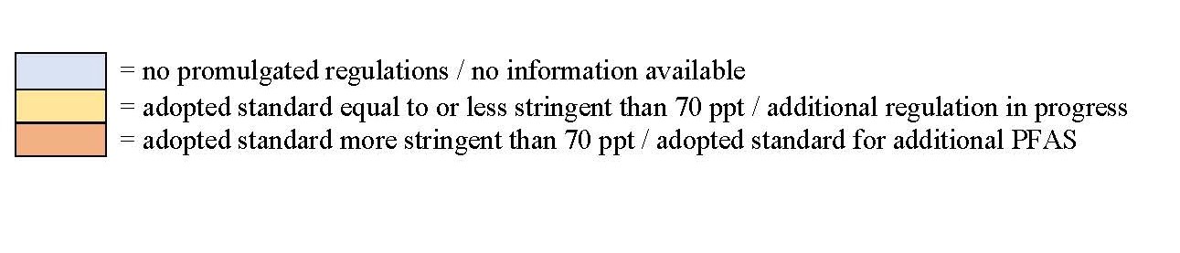 - Connecticut: Drinking water action levels for PFOA, PFOS, PFNA, PFHxS, and PFHpA (70 ppt, combined).