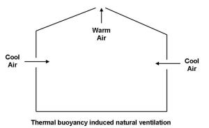 Figure 1: Thermal buoyancy induced natural ventilation uses a temperature difference between internal and external conditions to drive warm, stale, contaminated air out of a space.1